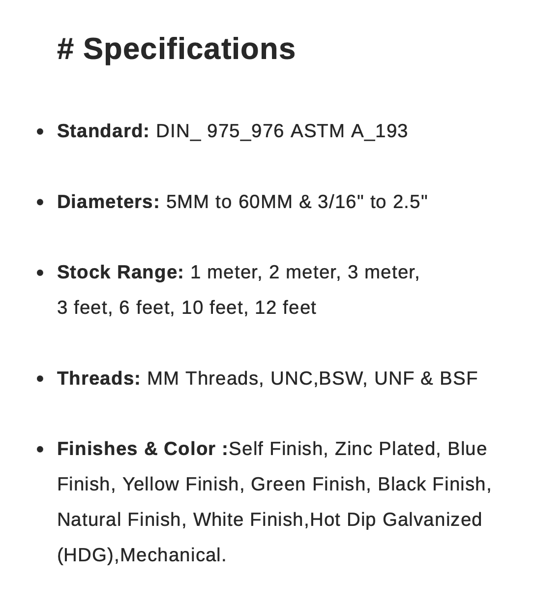 Diameter Range: M6 to M24 (custom sizes on request)